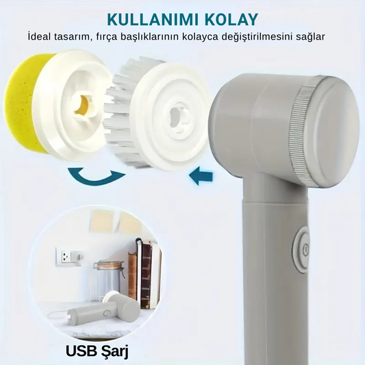 Elektrikli Döner Temizlik Fırçası – 5 Başlık